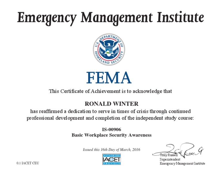 Is-906 Workplace Security Awareness - CERTIFICATE